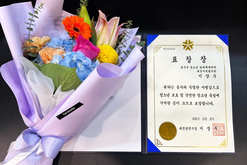 대전지역협의회로부터 표창을 받으며,