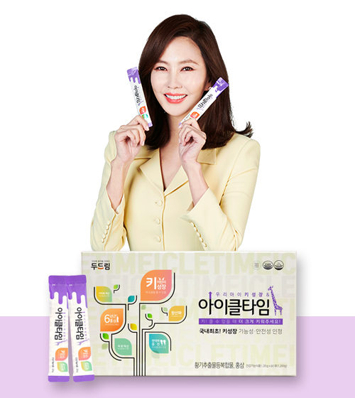 아이클타임은 국내 최초 식약처에서 키성장 물질로 인정받은 황기추출물 등 복합물(HT042)과 6년근 홍삼을 주원료로 한