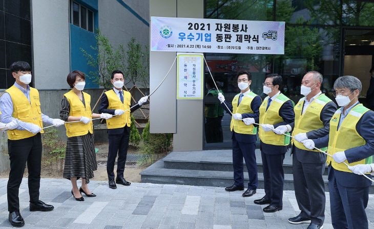 제막식에는 허태정 대전시장과 장종태 서구청장 등도 참석해 축하했다. 자원봉사 우수기업 동판 제막식은