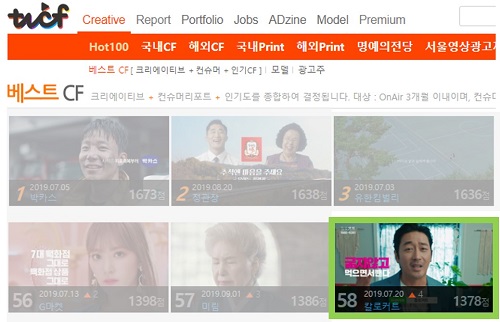 이러한 결과는 3개월 이내 온에어된 광고 중 크리에이티브 · 컨슈머리포트 · 인기도 등을 종합한 점수로 산출됐다.